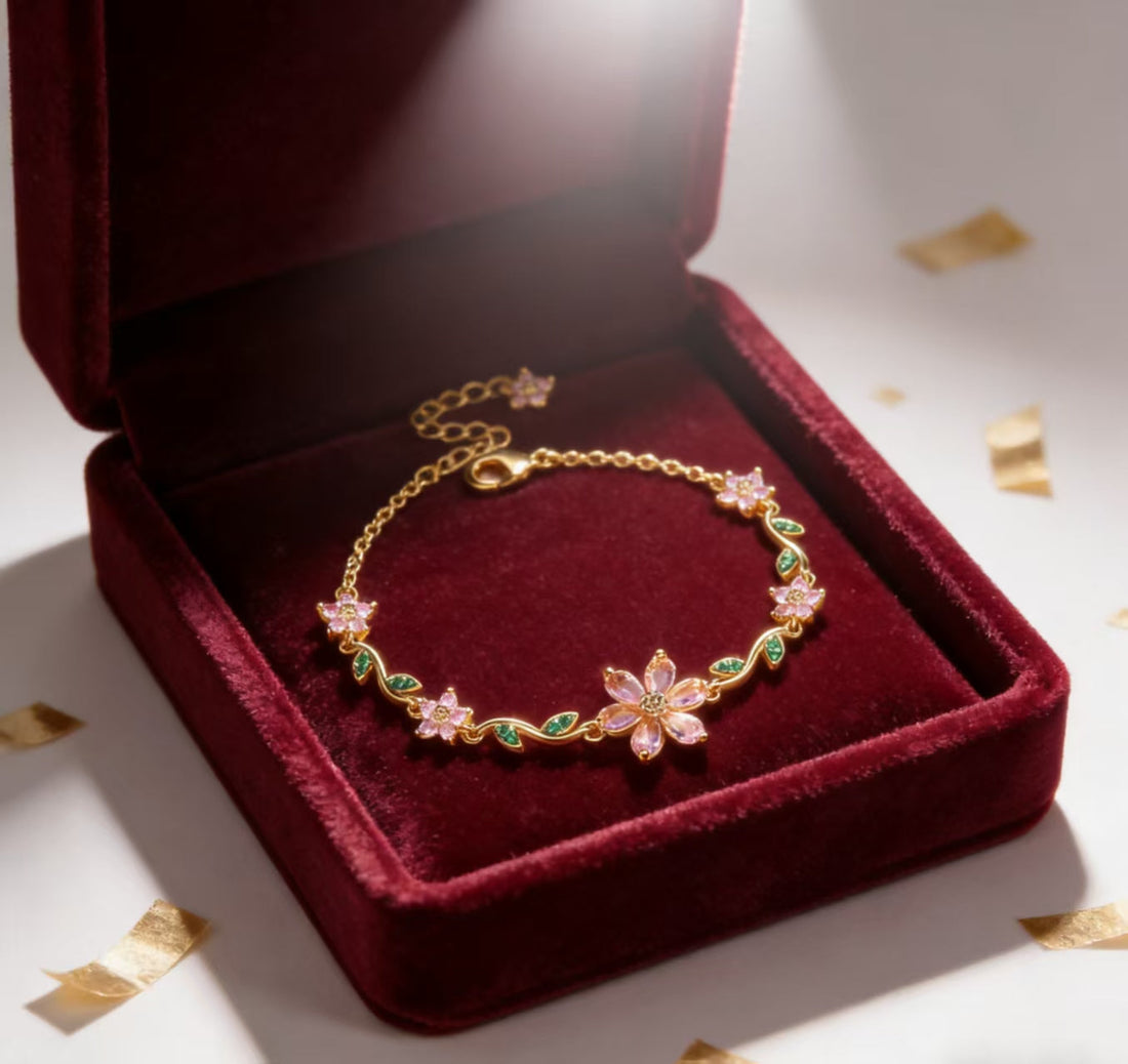 Valentine’s Zircon Petal Bracelet — Sweet, Delicate and Heart-Melting Sparkle
