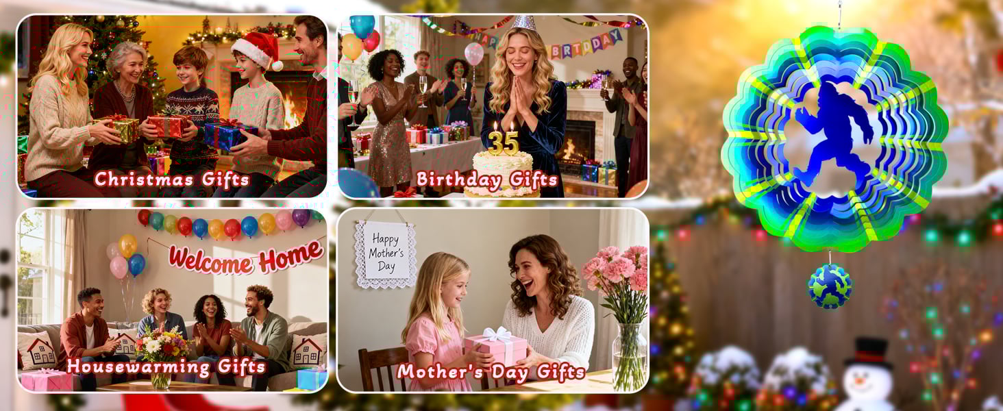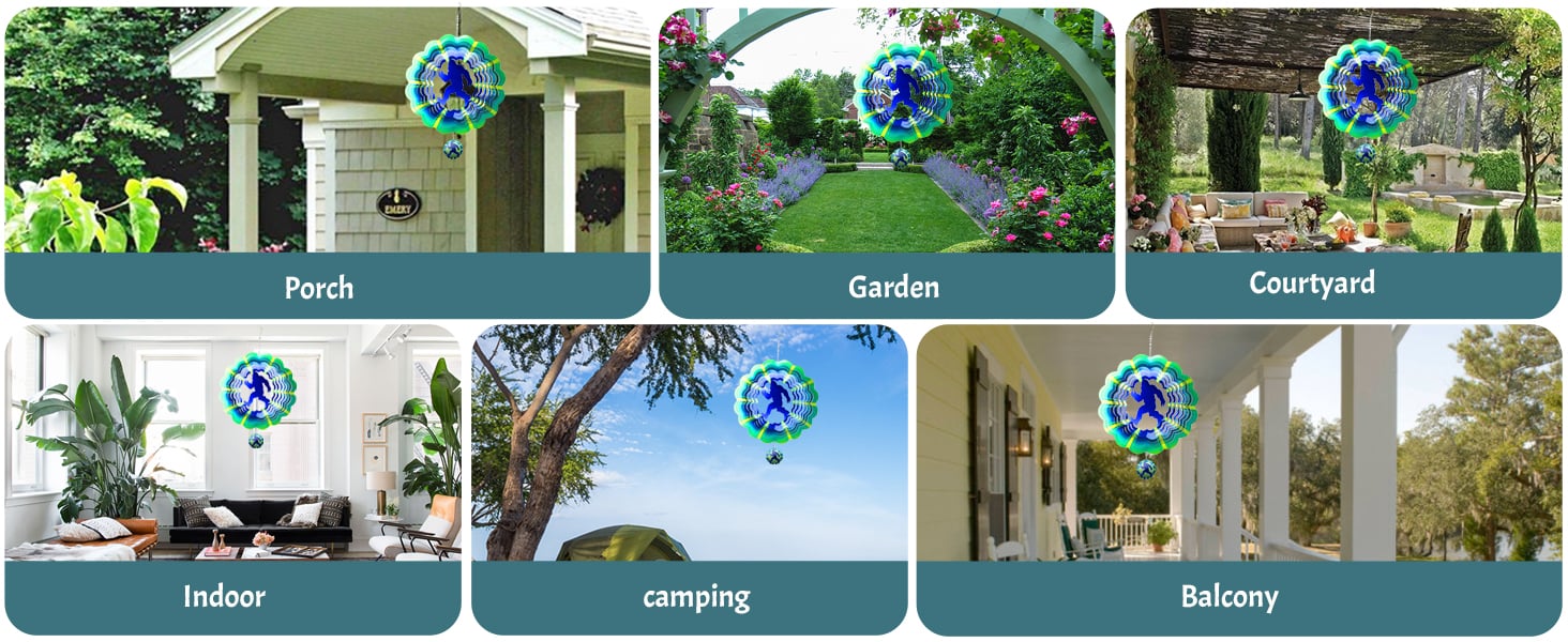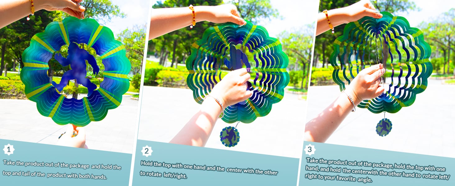 The wind spinner is the unique flow of light surface design, As the breeze blows, it rotates freely, creating a glittering visual display, bright colors and 3D patterns have a good visual effect.