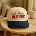 4th of July Embroidered Canvas Trucker Hat - Red White Blonde Brunette