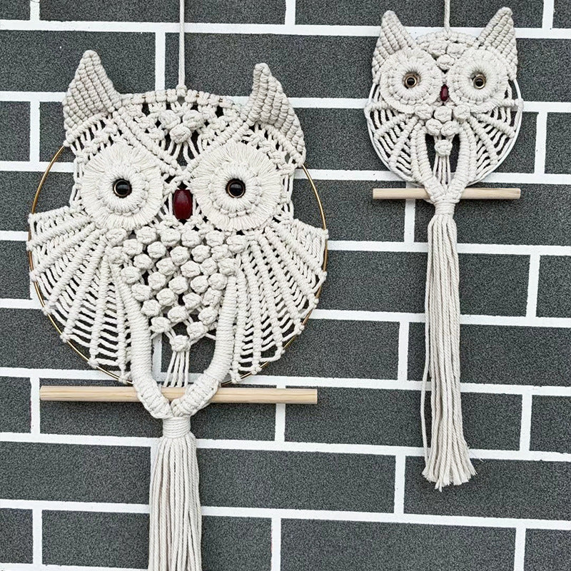 Add a touch of bohemian charm to your home with this handcrafted Owl Wall Hanging, now available in two sizes and customizable colors! Each piece is lovingly woven with premium natural cotton and adorned with wooden beads, paired with a complimentary faux eucalyptus sprig to enhance its organic, earthy appeal. Perfect for eclectic interiors, nurseries, or as a meaningful gift, this owl wall decor blends artistry with nature-inspired elegance.
