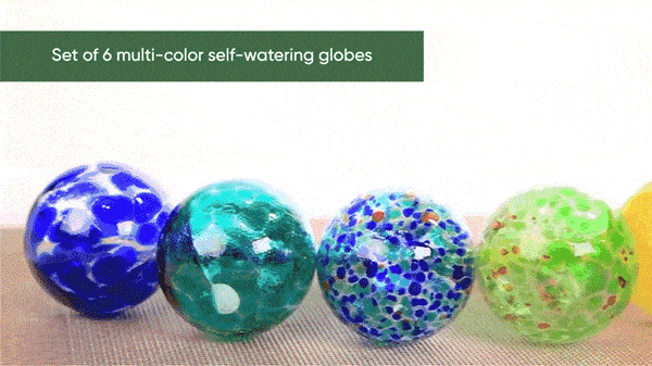 Quantity and Size: Package includes 6 Pieces Automatic Watering Bulbs; Size 2.36" x 6"(D x L); Comes in 6 beautiful colors, multicolor glass water globes that can be filled up and stuck into any potted plants.