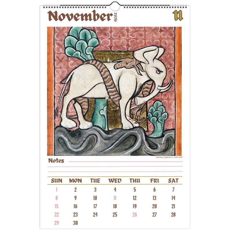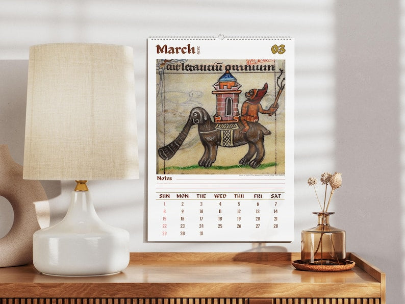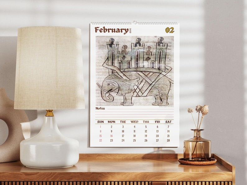 Meet the 2026 Hilarious Medieval Elephant Paintings Calendar—where medieval imagination meets unapologetic humor! This one-of-a-kind wall calendar revives the whimsical world of medieval bestiaries, featuring 12 monthly illustrations of elephants as our medieval ancestors imagined them: part majestic beast, part delightful oddity, with the legendary strength to carry castles (yes, really!) .