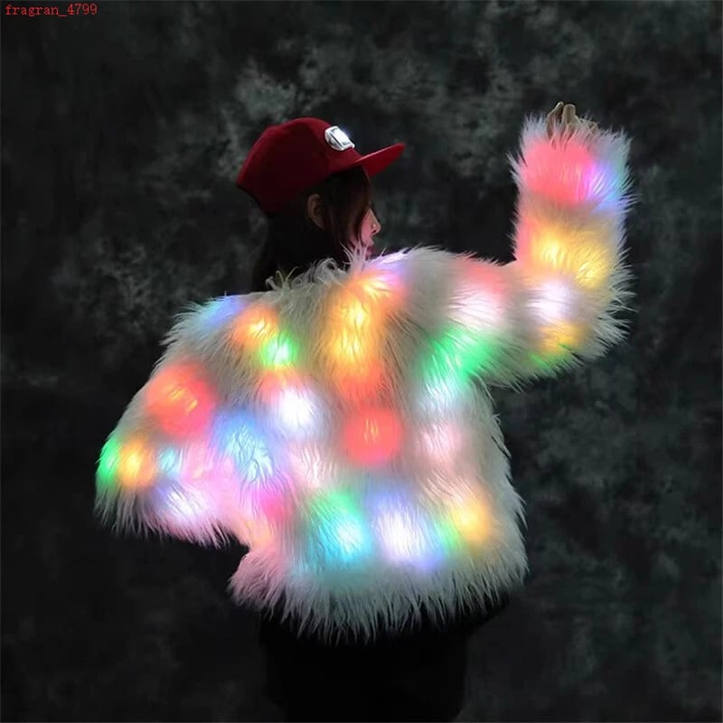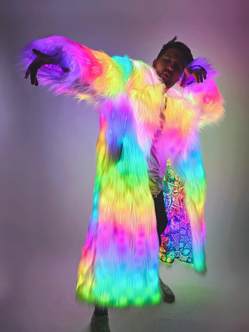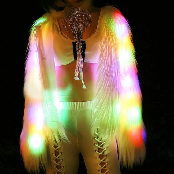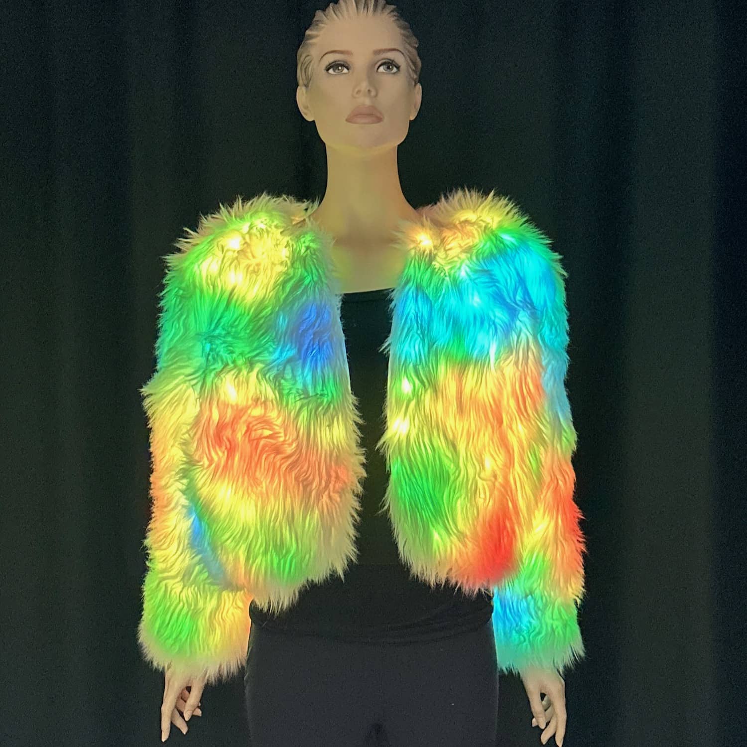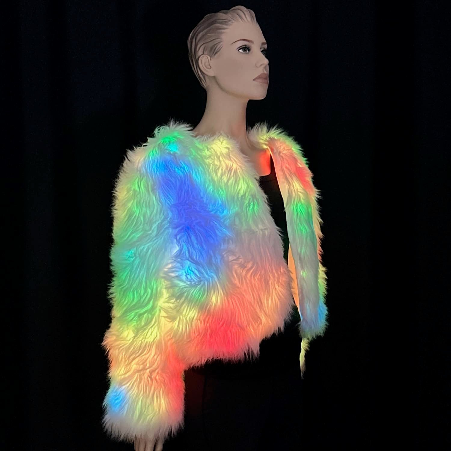 LED Coat - 100% Faux Fur, Thermal Warmth, App Ctrl for Winter Holidays