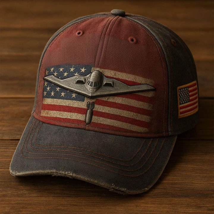 ✨ Honor in Every Stitch! Designed by U.S. veterans, this hat features the B - 2 bomber, “Midnight Hammer” badge, and a weathered American flag. Great for: