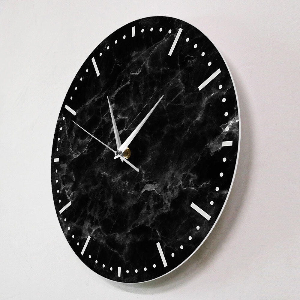 Modern Minimalist Black Marble Print Silent Wall Clock