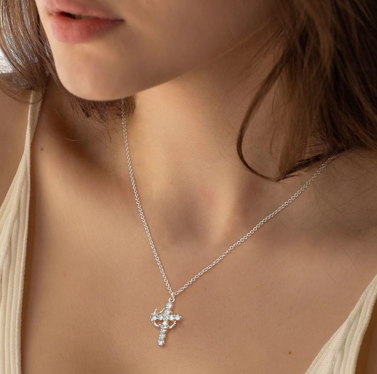 This cross necklace adds the element of a crown and attracts the eye. The cross symbolizes the importance of Christian values such as love, hope and courage. Wearing this necklace can convey a positive and firm attitude towards your beliefs,each gentle spin offers a moment to breathe, reflect, and say a quiet prayer.