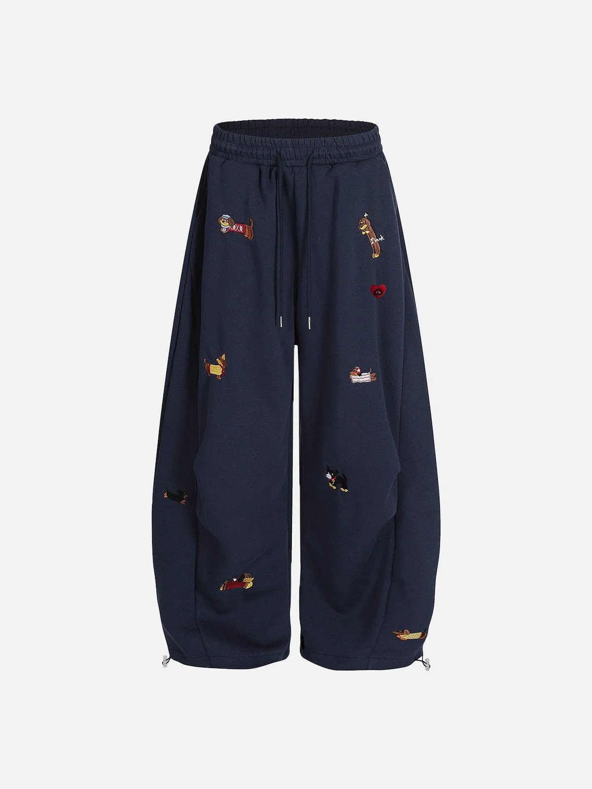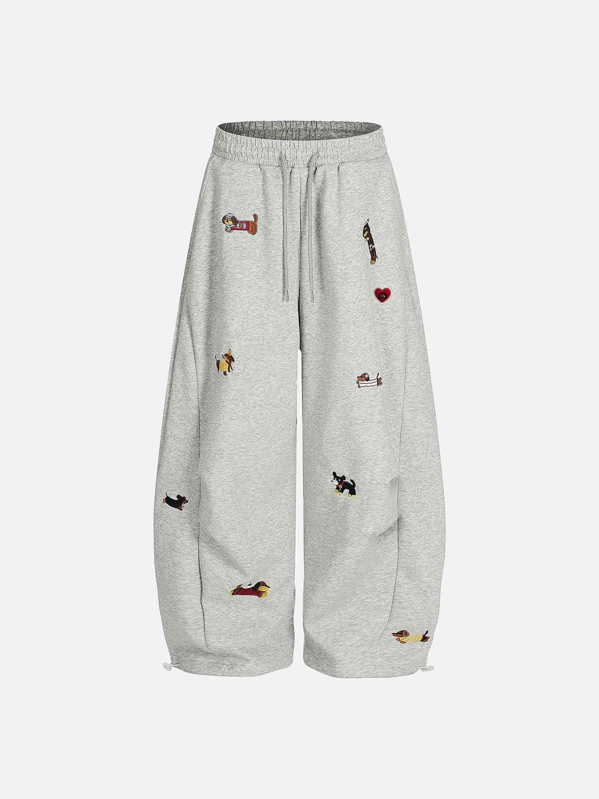 Unisex Embroidery Puppy Baggy Barrel Sweatpants